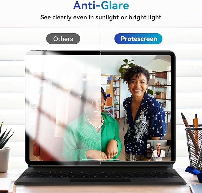 - 【Anti-Glare & No-Fingerprints】Protescreen iPad Pro privacy screen protector for iPad film surface blocks glare processing reduces reflections, prevents screen reflection and blue-light, keeps the screen comfortable to the eyes, and the special craftsmanship prevents fingerprints and smudges, The 4H hardness prevents scratches from sharp objects. Be the best protector of your eyes and iPad Pro 12.9 screen.