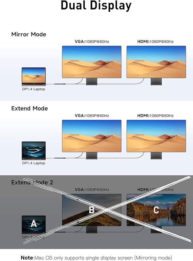 - [USB C Docking Station For Laptop]:Dual monitor support Connect two monitors simultaneously to expand your workspace and enhance productivity with this USB C docking station.