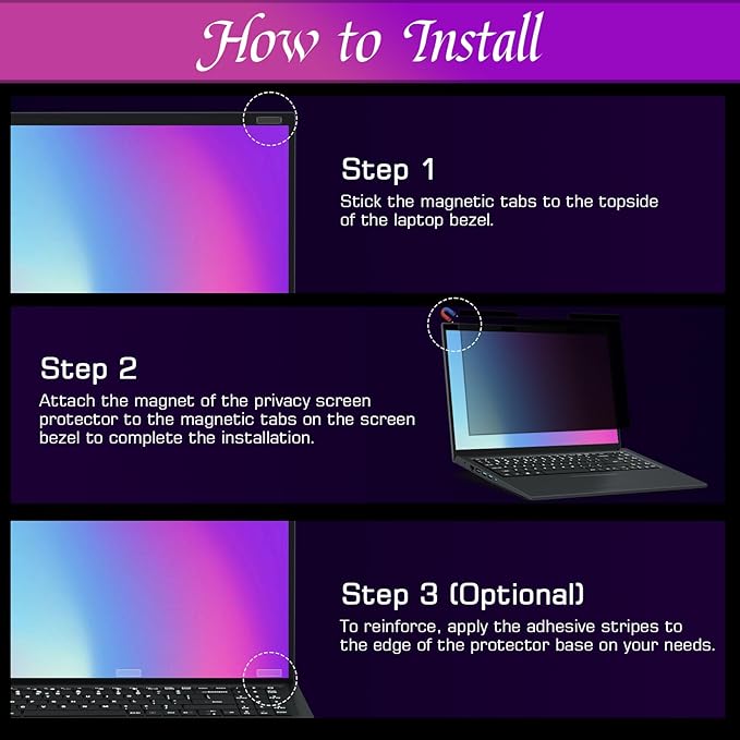 - Easy Magnetic Attachment - With its innovative magnetic attachment system, the PYS Privacy Screen is incredibly easy to install and remove. Simply align the screen with your laptop’s built-in magnets or use the adhesive magnets (included) for laptops without magnetic frames. It stays securely in place, yet can be effortlessly detached for easy storage with the included clip. Perfect for on-the-go protection.