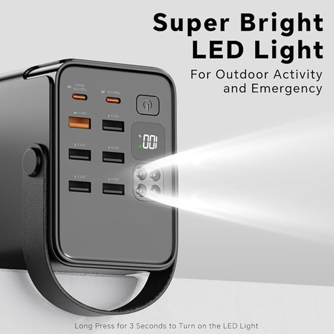 - 【Accurate LCD Display & Portable Handel】This Large 70000 mah Power Bank built-in advanced smart digital display technology. The power display accuracy is up to 100% which ensures you know the remaining power clearly and never missing recharging in time.This power bank is also equipped with a portable handle, which is easier to carry and has no burden to use outdoors.
