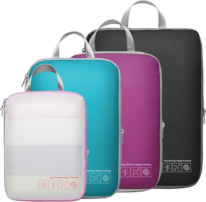 Cambond Compression Packing Cubes for Travel Women - Travel Bags Luggage Organizers Travel Essentials Compression Cubes for Travel Carry on Suitcases Organizer