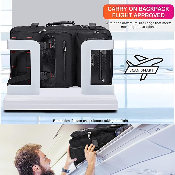 - Multi Functional Backpack: This carry on backpack comes with detachable and adjustable shoulder straps, which can be hidden in a large zipper pocket on the back, enabling multiple carrying options:duffel bag, crossbody bag, shoulder bag, tote bag.Equipped with USB and headset ports externally, and a charging cable internally, making it easier for you to charge and listen to music while traveling.
