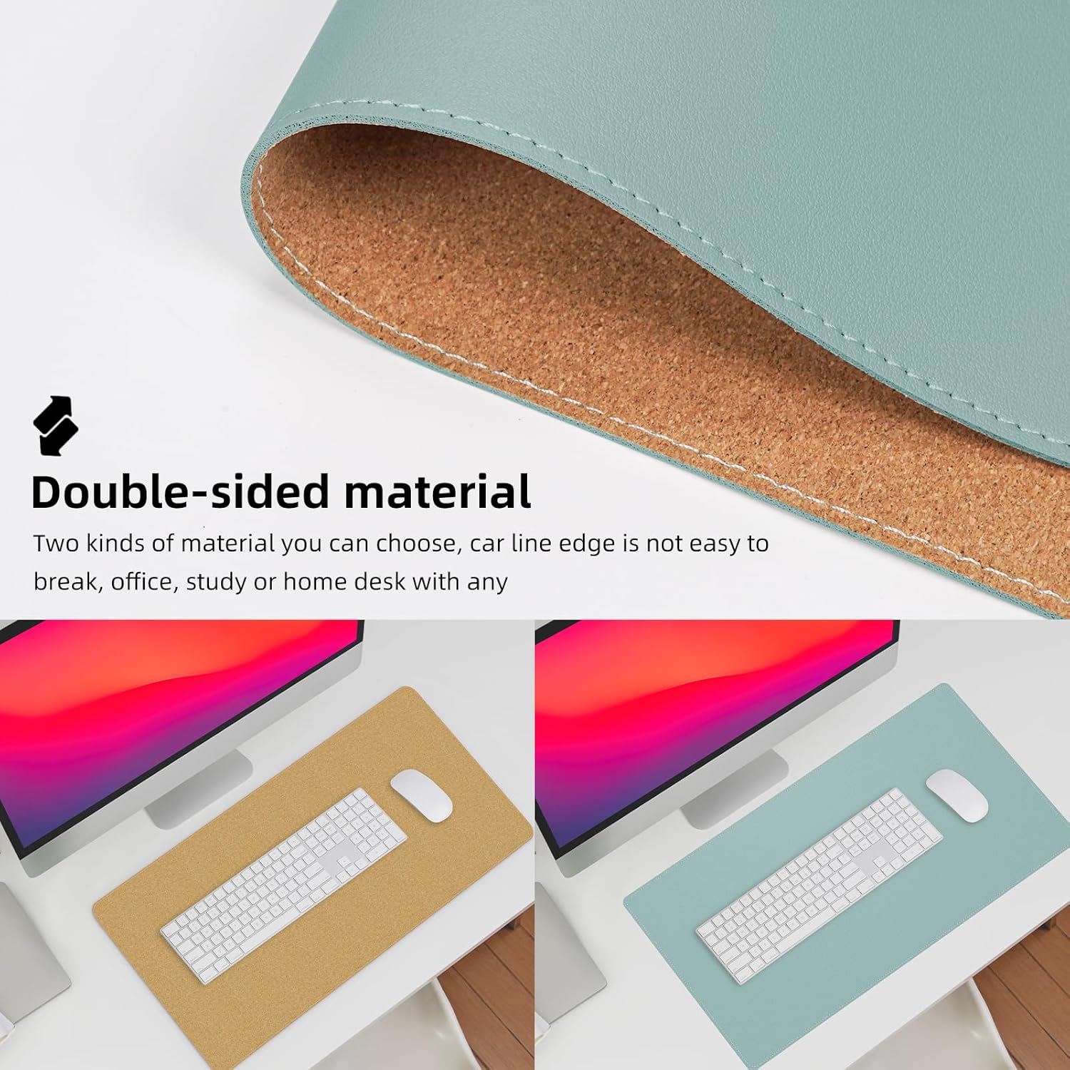 AFIING Dual-Sided Desk Pad, Natural Cork & PU Leather Large Mouse mats for Office and Home Work, Desk Protector Non-Slip, Waterproof, Easy Clean (Light Blue, 23.6" x 13.7")