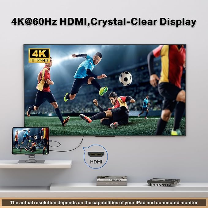 - 【7-in-1】This docking station has 7 functional ports to meet your expanding needs with a USB-C 100W PD charging port, a 4K60Hz HDMI port, 2x USB-A 3.0 ports,TF and SD card slots, a 3.5mm audio jack, and a USB-C host port(5G). Use the included cable, connect one end to the USB-C port of iPad, connect the other end to HOST port on the stand, after connecting, all ports can start to work
