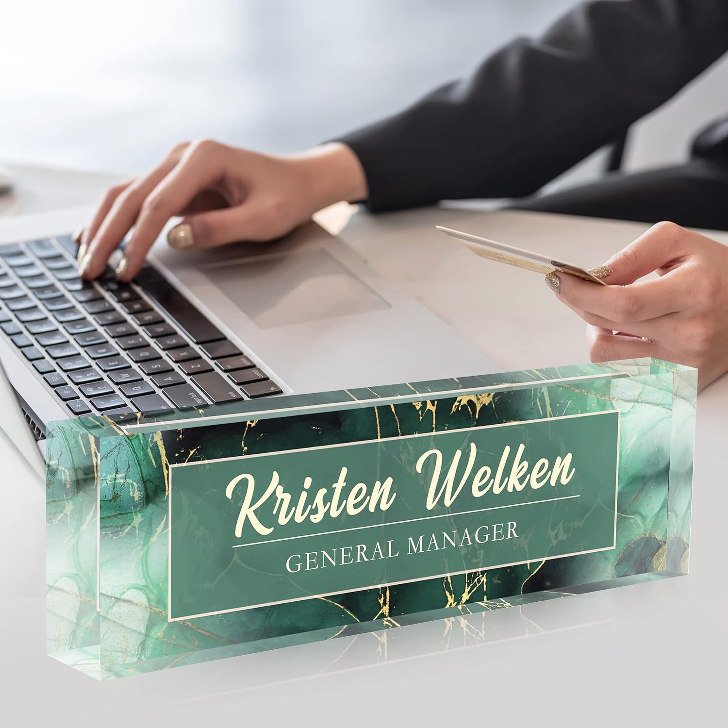 Acrylic Name Plate Personalized, Teacher Name Plates for Desks Classroom, Gifts for Teacher Boss Employee Appreciation Office Desk Decor (Green Marble1)