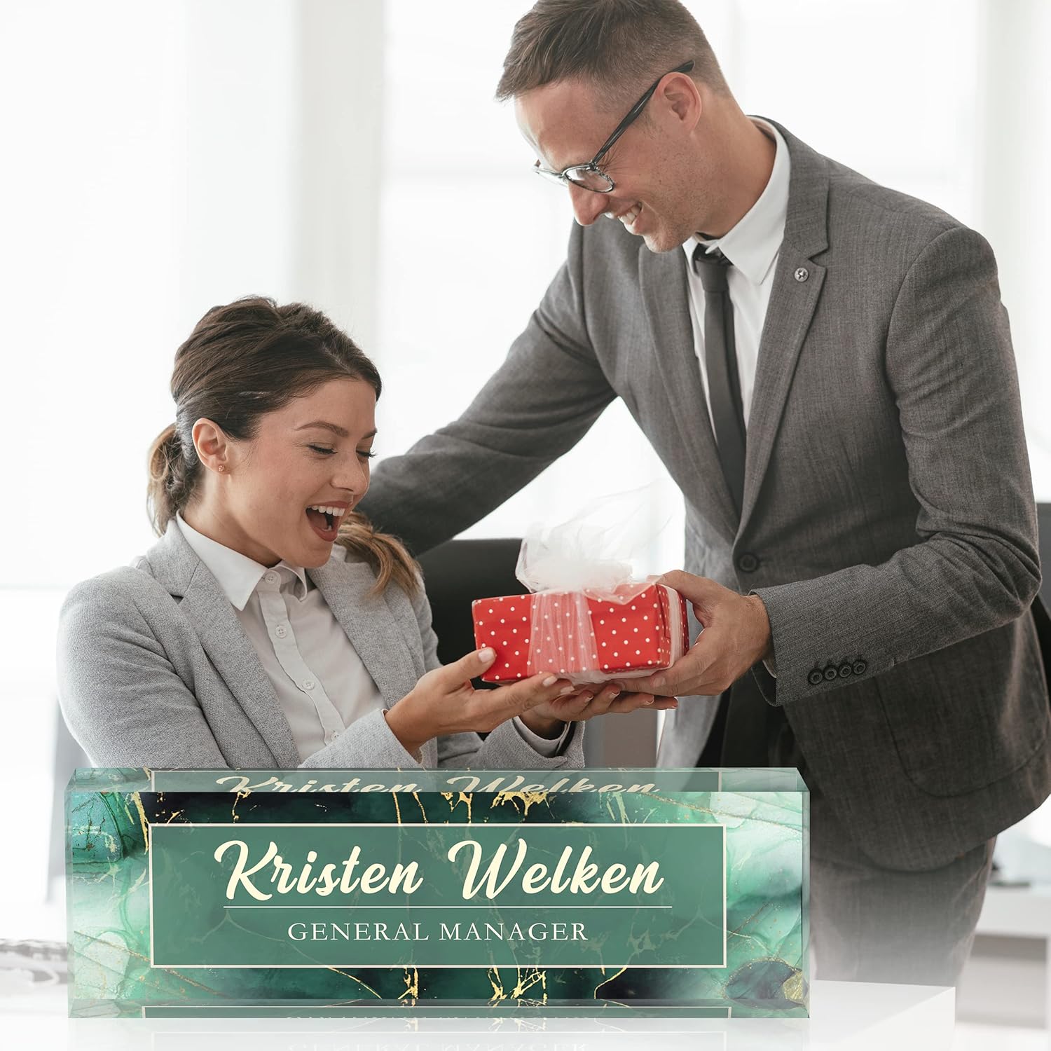 - Perfect Personalized Gift: Acrylic desk personalized plaquese are the perfect teacher gifts, as well as office decor for women, boss, new employees, retired colleagues on holidays, birthdays, anniversaries.They will be pleasantly surprised by this personalized gift