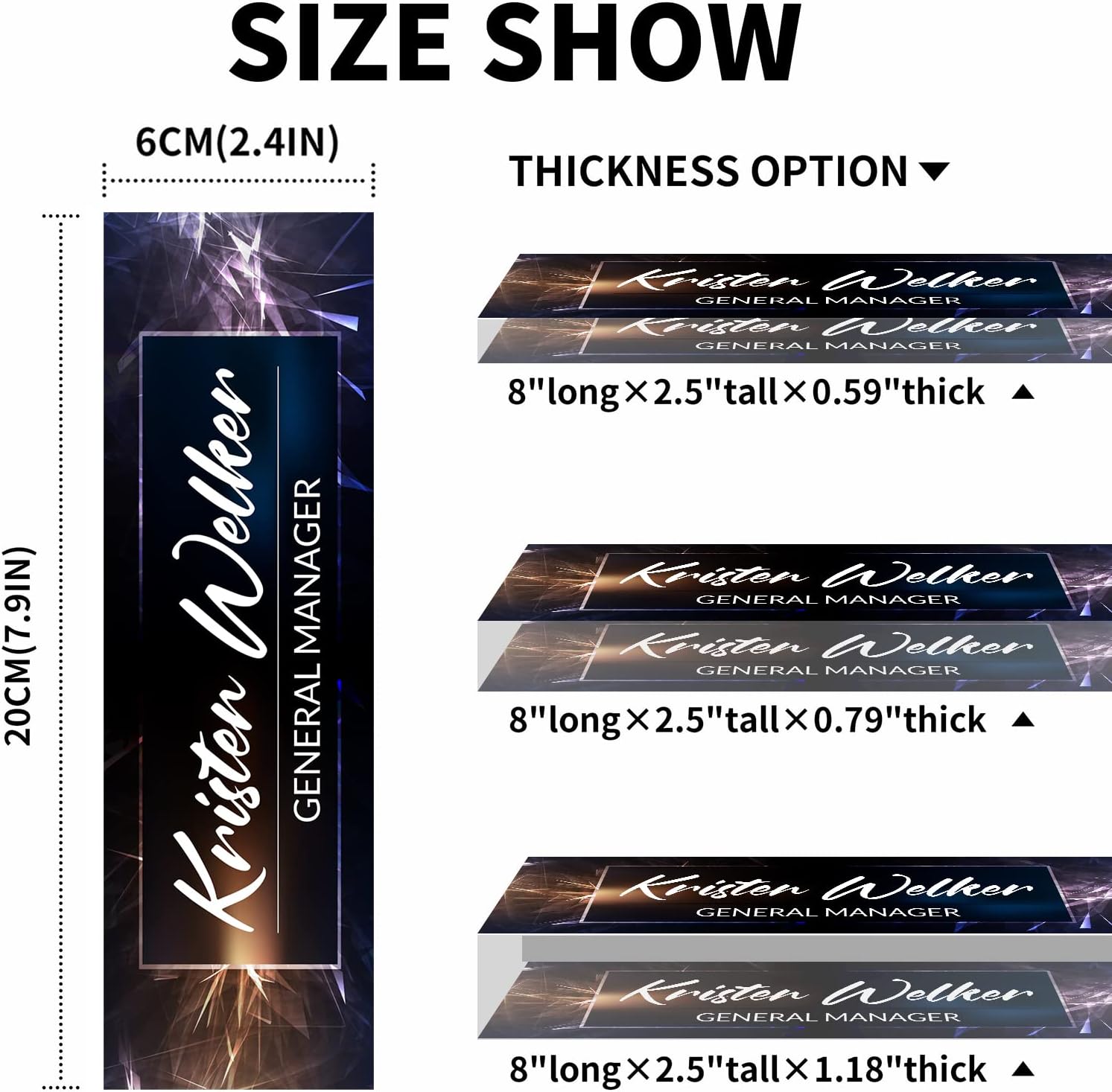 - Quality Name Plate Material: Our name plate for desk is made of high quality crystal clear acrylic, which is very lightweight, strong and durable and will be translucent as new after a long time. Compared to other name plates, name plates made of this material look better in terms of quality and design, appearing more premium and showing personal taste.