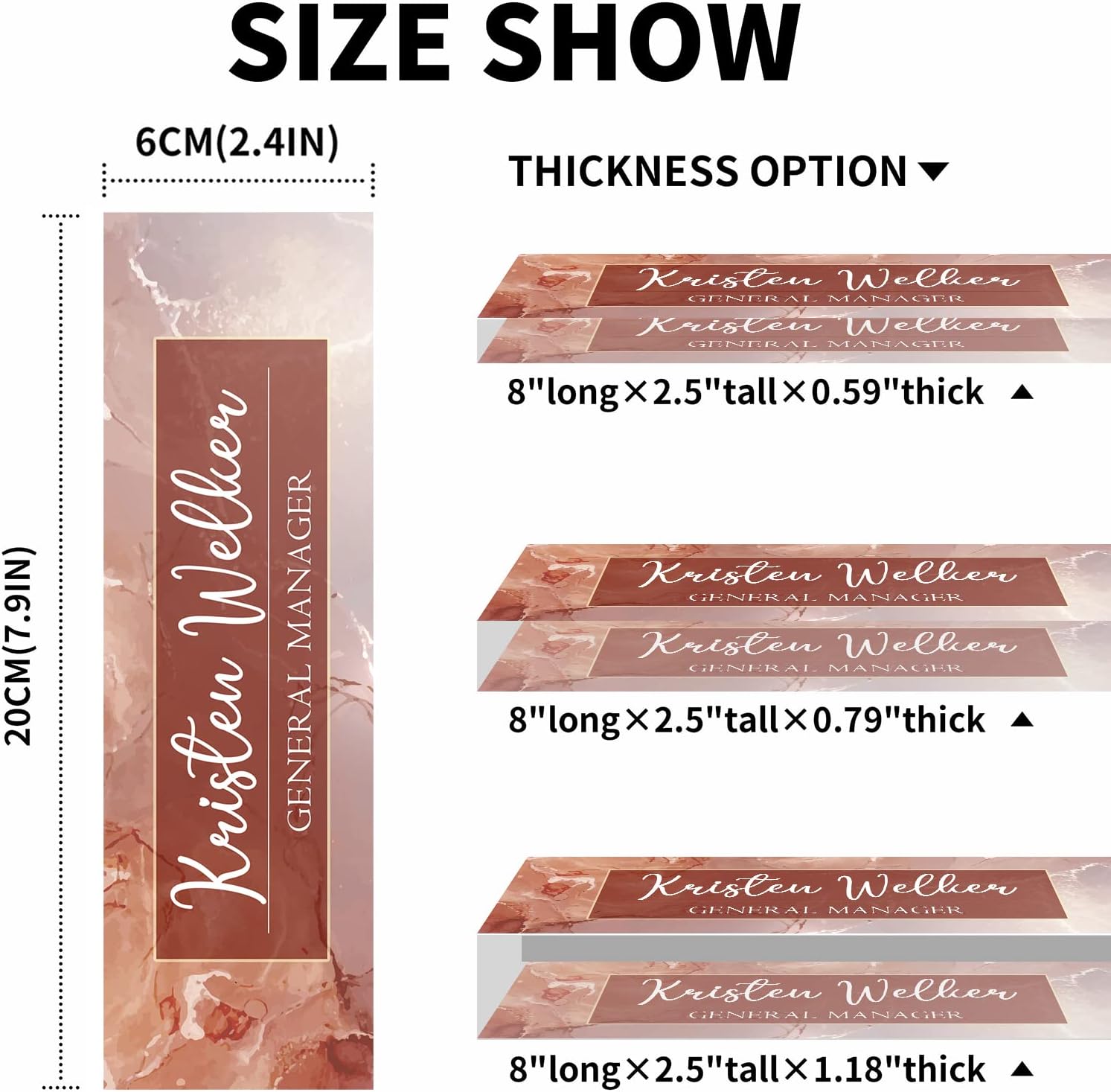 - Quality Name Plate Material: Our name plate for desk is made of high quality crystal clear acrylic, which is very lightweight, strong and durable and will be translucent as new after a long time. Compared to other name plates, name plates made of this material look better in terms of quality and design, appearing more premium and showing personal taste.