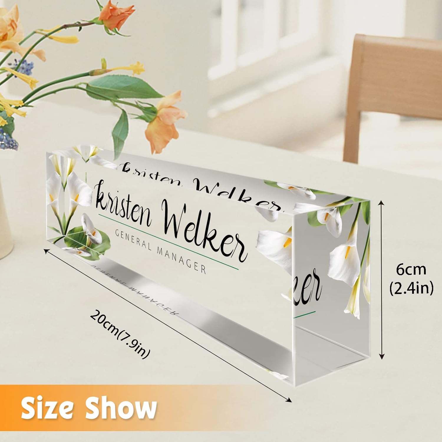 Office Desk Name Plate Personalized, Custom Name Plates for Desks, Name Plate Personalized for Office, Employee Appreciation Gifts (Calla Lily)