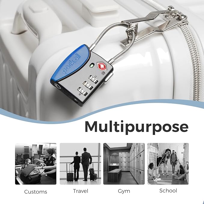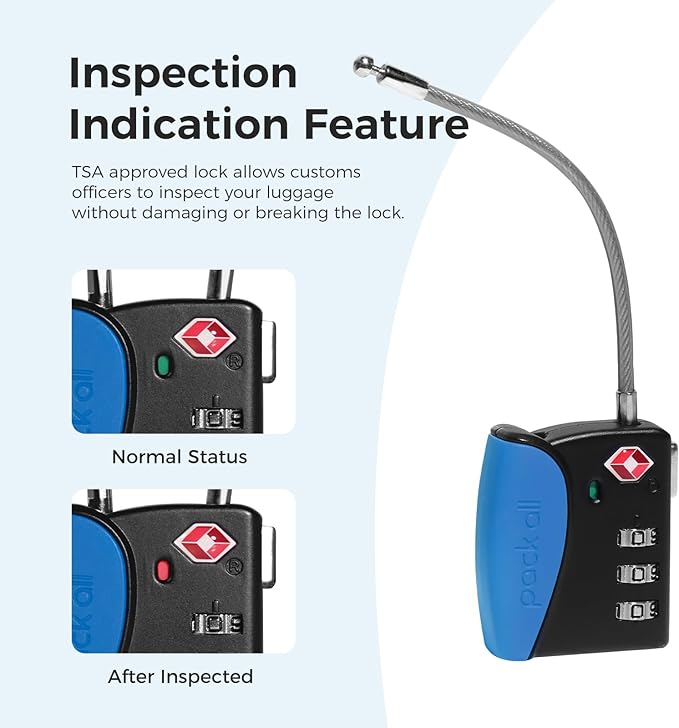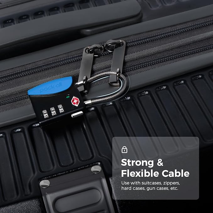 pack all TSA Approved Cable Luggage Locks, 3 Digit Combination Padlocks, Travel Lock for Suitcases & Bag, Alloy Body, Travel Accessories (1 Pack)(Navy)