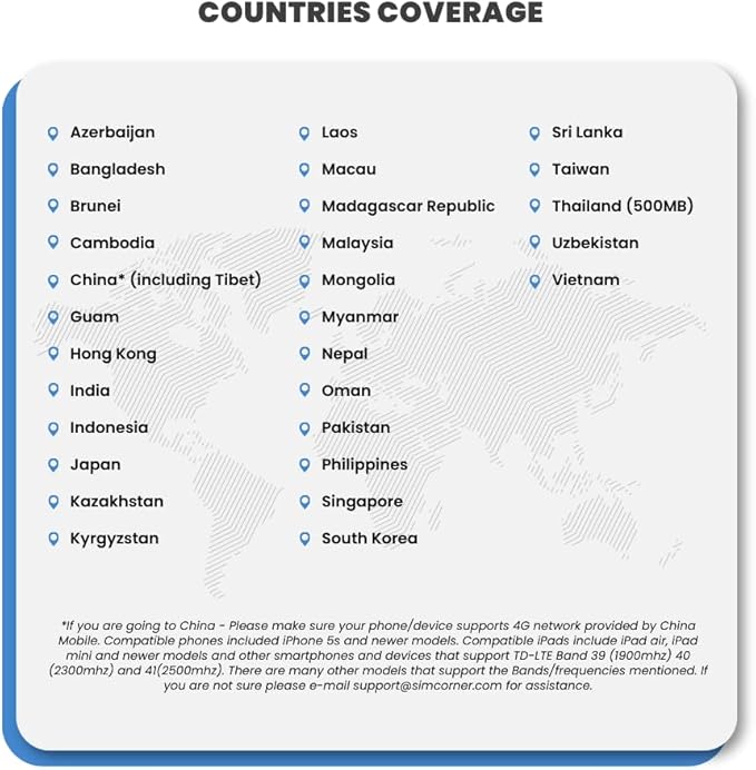 - Easy activation: After ordering, you will receive simple step-by-step instructions for activation. Our prepaid e-SIM is hassle-free. This Asia Travel eSIM card is automatically activated based on the activation date you provided during the registration process