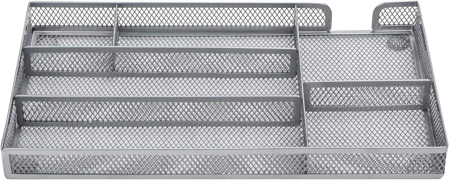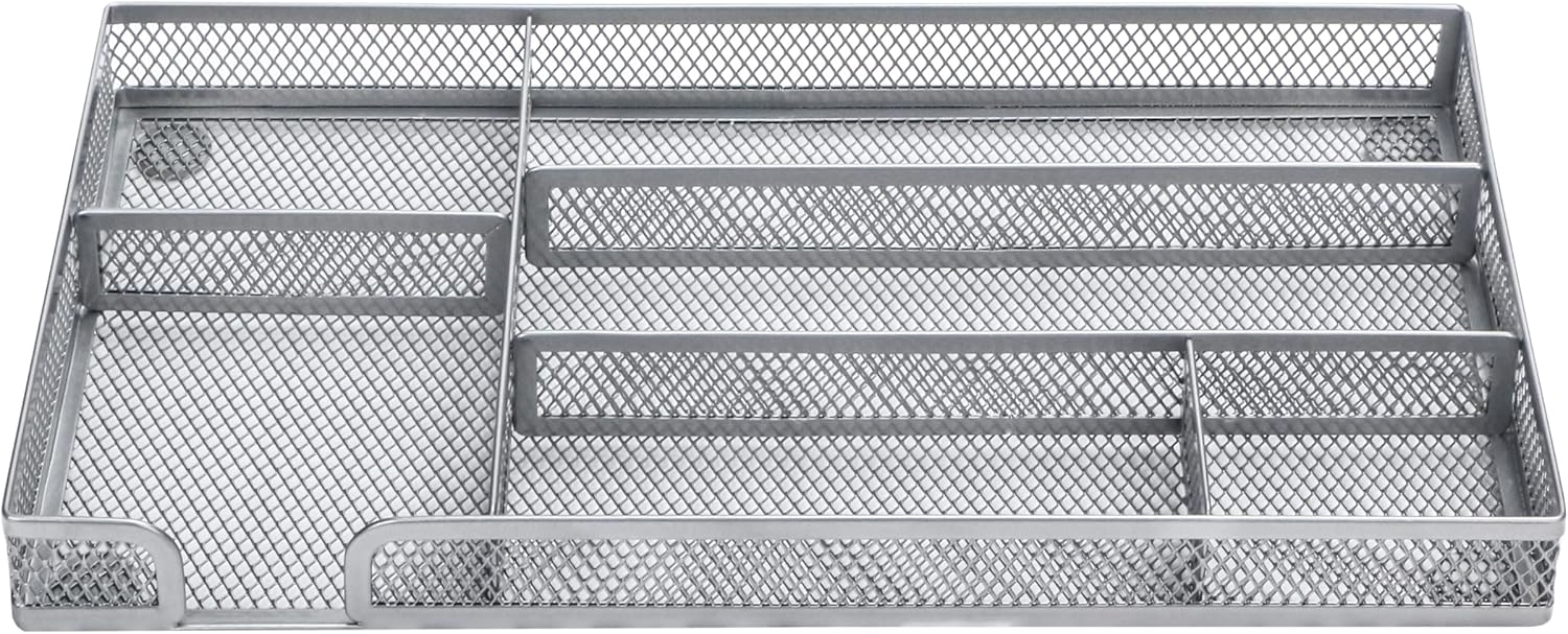 Annova Desk Drawer Organizer Tray for Office Organization - Metal Mesh - Storage Tray with Dividers for Pens, Desktop Accessories, Bathroom, Kitchen, Makeup and Office Supplies (Small, Silver)