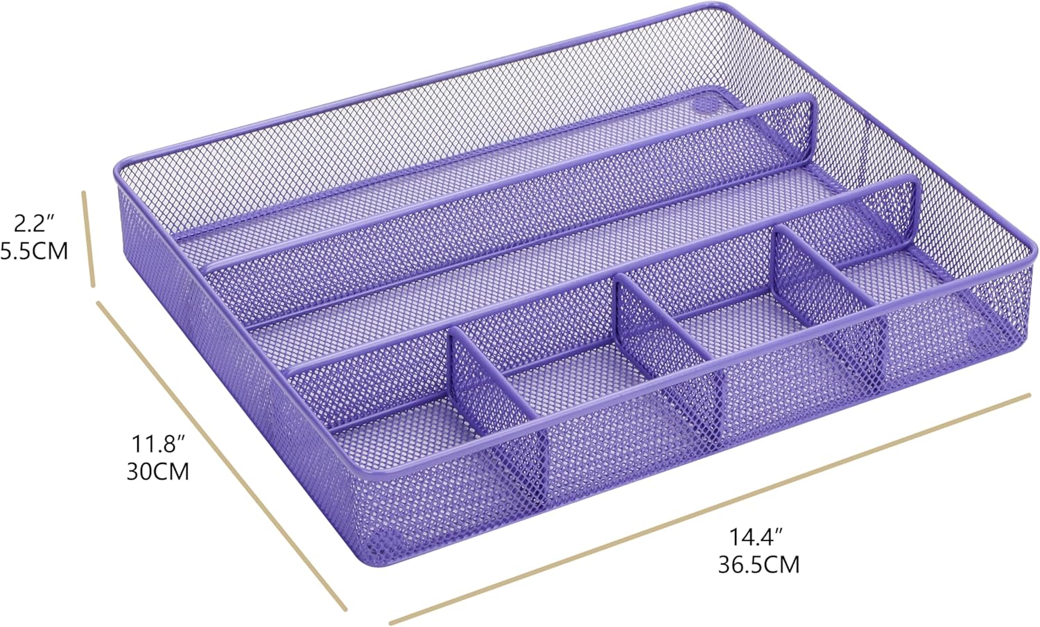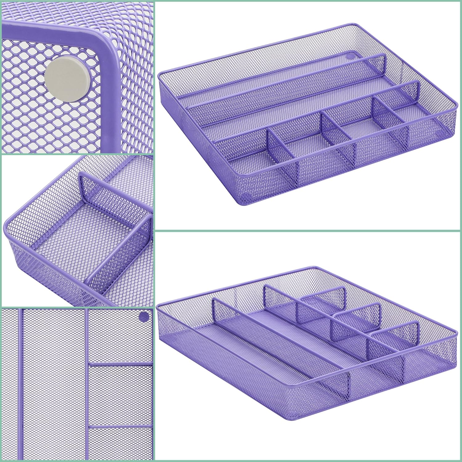 Annova Desk Top Organizer Tray for Office Organization - Metal Mesh - Storage Tray with Dividers for Pens, Desktop Accessories, Bathroom, Kitchen, Makeup and Office Supplies (Large, Purple)