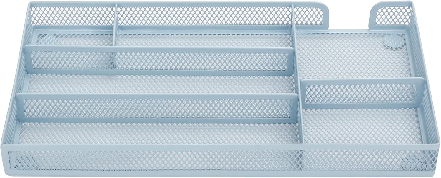 Annova Desk Drawer Organizer/Storage Tray - Metal Mesh with Dividers for Pens, Desktop Accessories, Bathroom, Kitchen, Makeup and Office Supplies (Small, Morandi Blue)