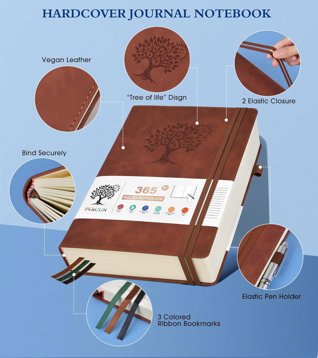 - 【365 Pages Premium Thick Paper】: Our PERCUN lined journal notebook is made of 365 pages high-quality 100Gsm thick ruled pager with an acid-free light Ivory paper that is thicker than normal. This premium quality paper will not cause bleeding, ghosting or smudging and is suitable for most types of pens,provides ample space for journaling, note-taking, and creative writing. The line spacing is 7mm, making it easy to write legibly and neatly.