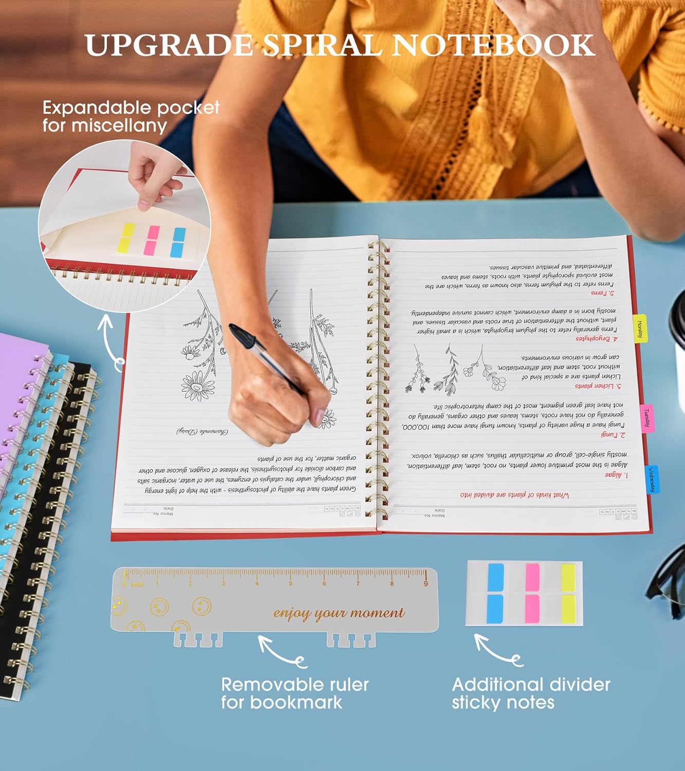 - 【Strong Spiral Metal Twin-Wire】 Our spiral journal notebook has a sturdy gold-color double wire spiral with easy-to-turn pages and keeps pages attached reliably, while still staying flat when opened, which reading more convenient and taking notes more efficient. Spiral bound journal easy to tear-off and fold over, as well as flip the cover back, giving you a better writing experience. Golden spiral bound adds aesthetic matching, it’s the perfect big notebook for journaling, and planning.