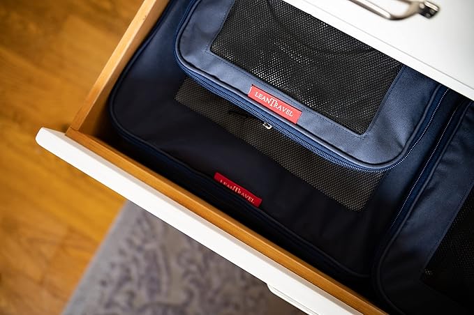 LeanTravel Compression Packing Cubes for Travel Organizers with Double Zipper (3-Pack (2L+1M), Navy)