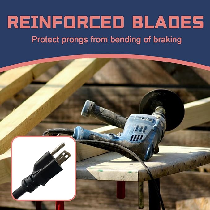 - 3 Prong Grounded Extension Cord - Grounded plug for adding safety. Reinforced blades protect prongs from bending or breaking.