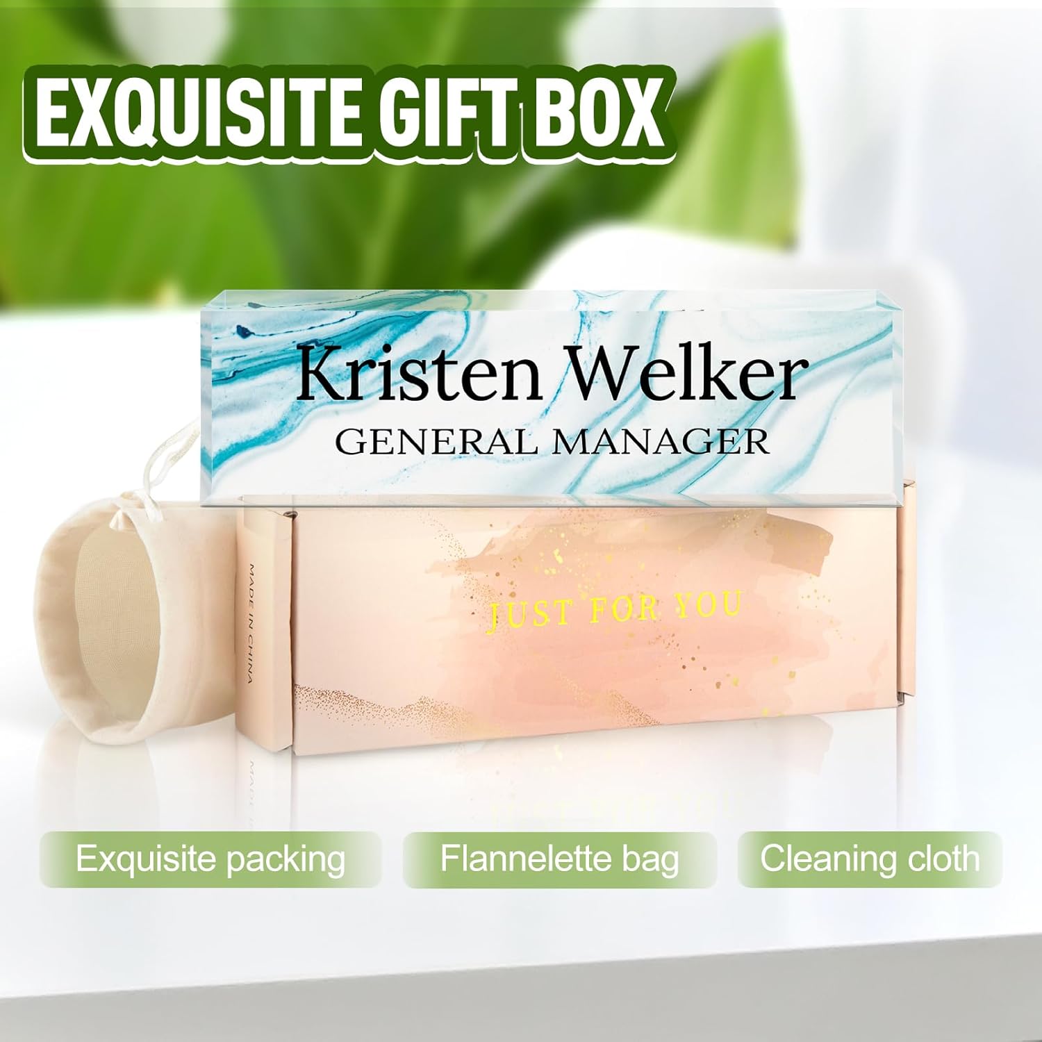 - 🎁【Distinctive Office Decor】In recent years, countless custom-made name plate customers have received envious eyes and praise from colleagues. For traditional boring nameplates, we continue to innovate and update printing/laser technology, only for the exquisite carving of each design Finely cut acrylic glass art ornaments sparkle on your desk and attract everyone's attention