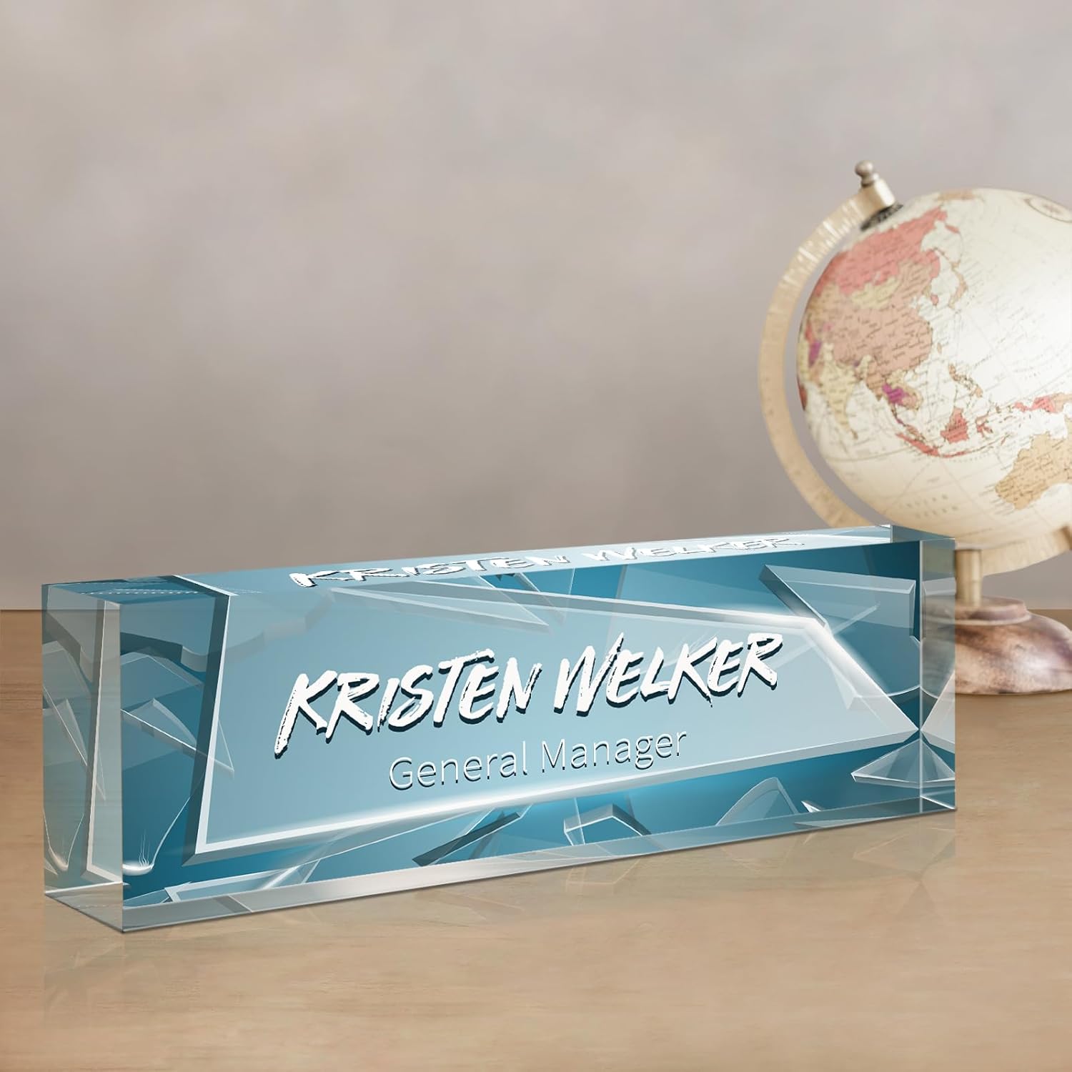 Gowellly Desk Name Plate Personalized - Custom Acrylic Name Plate for Desk - Enterprise Custom Logo/Text nameplates - Employee Appreciation Gifts (Broken Glass-1)