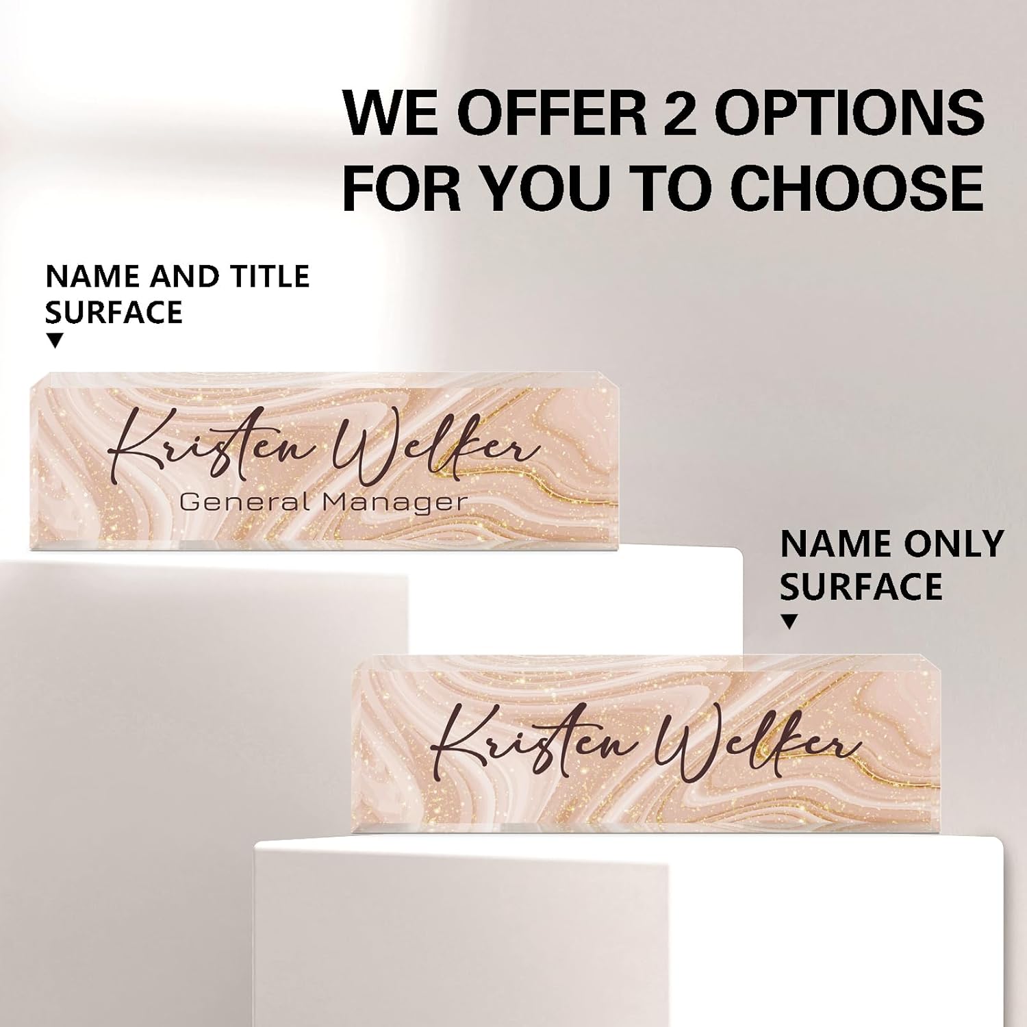 Gowellly Desk Name Plate Personalized - Custom Acrylic Name Plate for Desk - Enterprise Custom Logo/Text nameplates - Employee Appreciation Gifts (Light Pink-1)