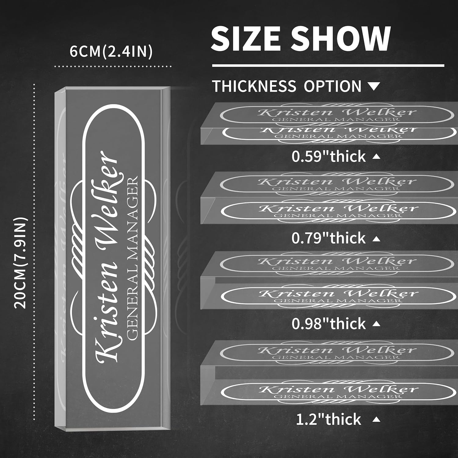 - 🎁【Personalization Options】We have hundreds of designs for you to choose from, there is something for you. Professional designers design unique styles, laser engraving will never be engraved, there are 4 thicknesses and 2 Layout Options to choose from, the thickness is 0.59/0.79/0.98/1.2 inches to meet all your needs, choose the one that suits you and click Brighten up your desk. Please click the "Customize Now" button to customize your exclusive nameplates together!