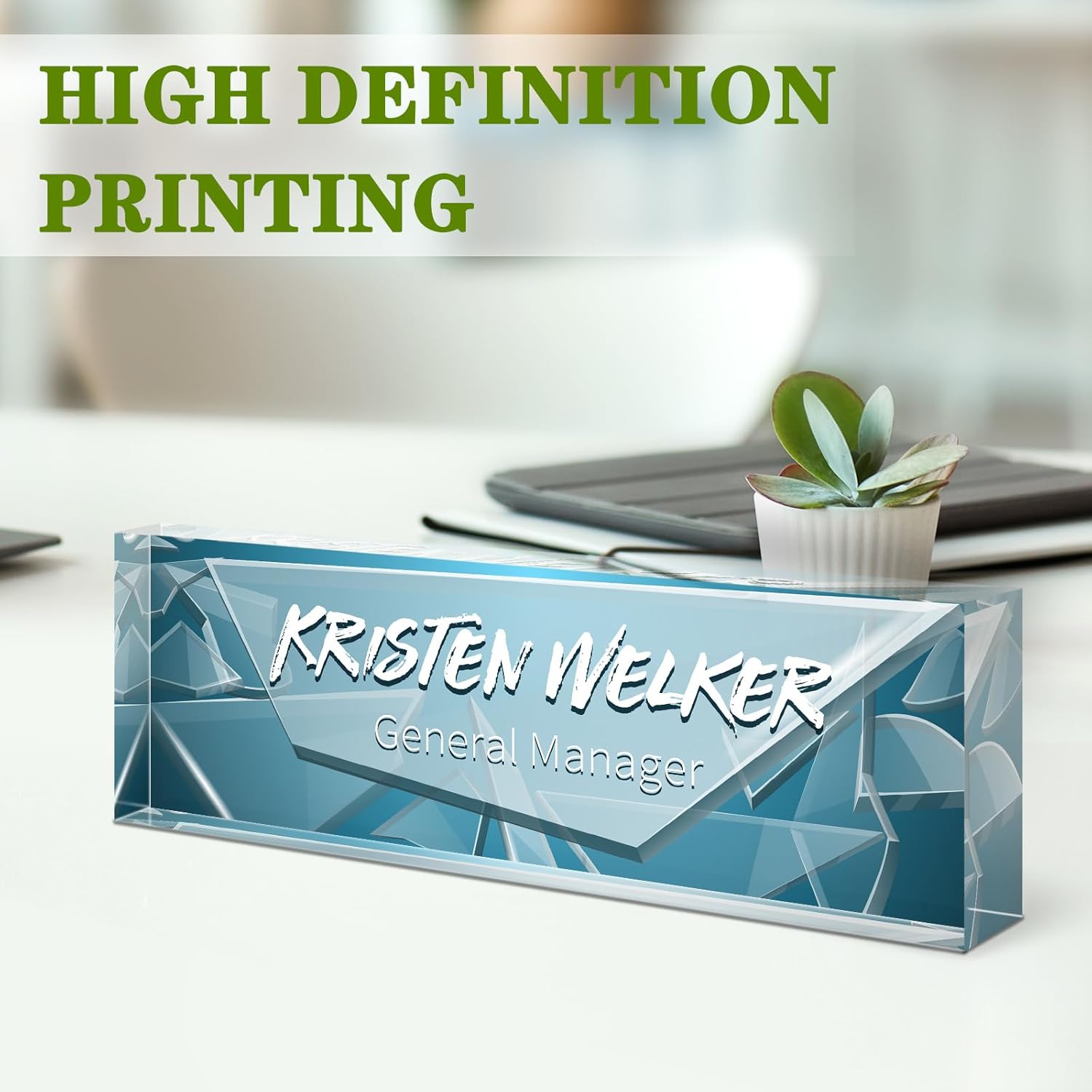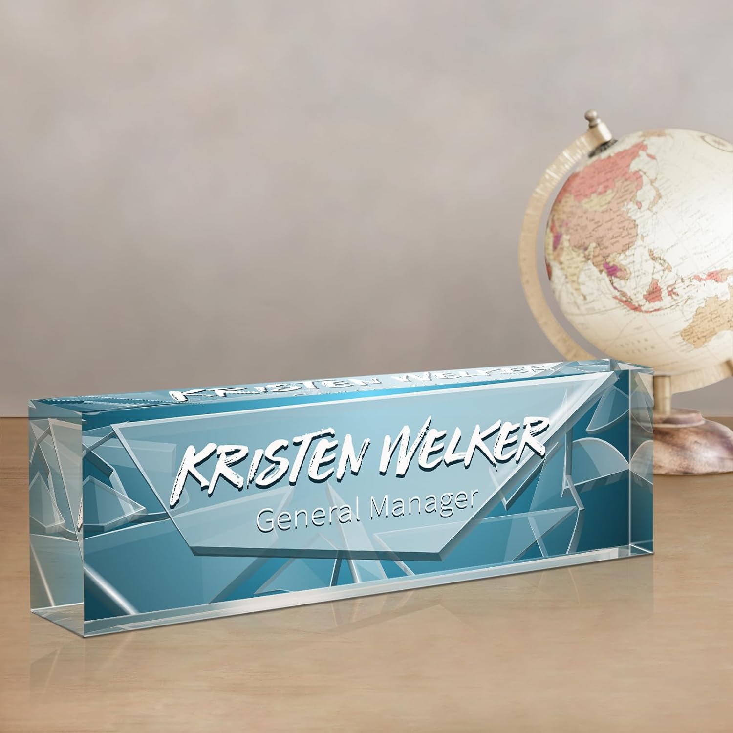 Gowellly Desk Name Plate Personalized - Custom Acrylic Name Plate for Desk - Enterprise Custom Logo/Text nameplates - Employee Appreciation Gifts (Broken Glass-2)