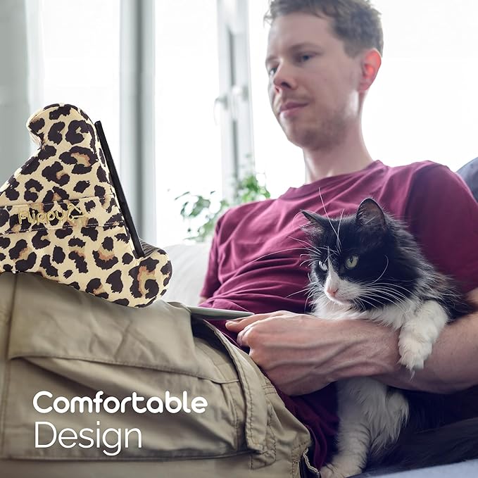 Flippy Tablet Pillow Stand - Cushion Tablet Stand & Holder, Bed Support for Lap and Desk, Compatible with Phone & Book Reading: Kindle, iPad Pro, iPhone & Samsung - Def Leopard