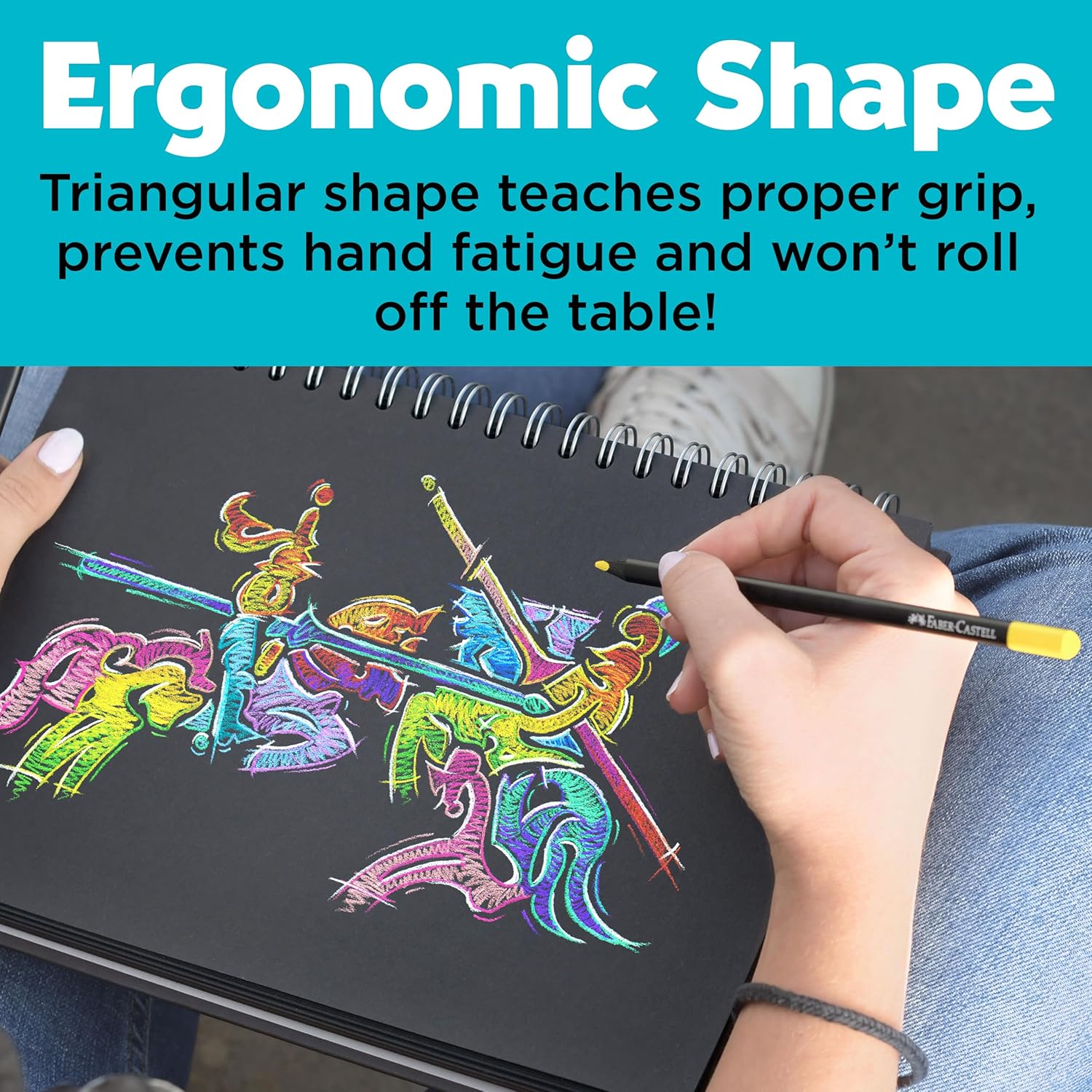 - ERGONOMIC COLORING PENCILS: Faber-Castell colored pencils are pre-sharpened and feature a triangular shape, ensuring the correct grip position with optimum comfort and preventing hand fatigue when drawing and coloring. Just add creativity to bring your adult coloring books, drawings and sketches to life with brilliant color