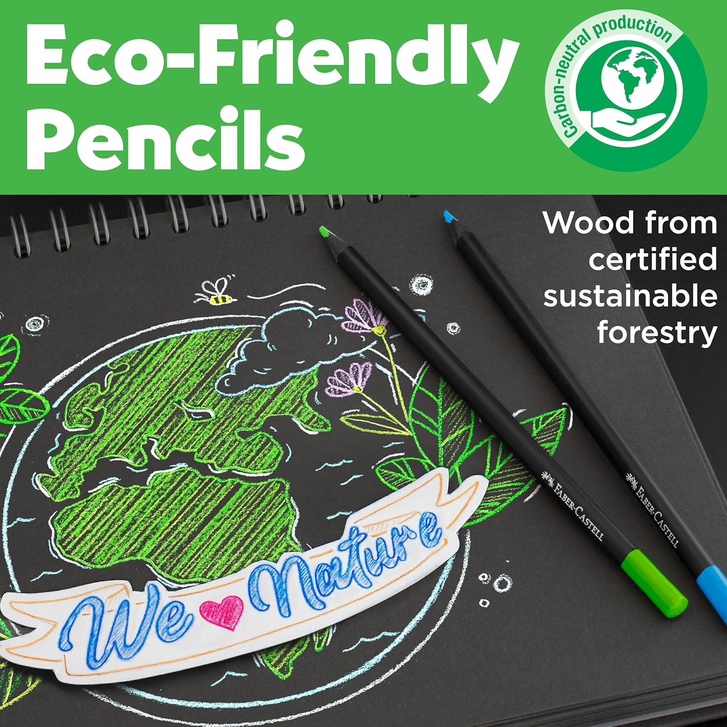 - FABER-CASTELL COLORED PENCILS: Experience endless creativity and pure color with Faber-Castell Black Edition art colored pencils. Featuring black wood and soft-core colored pencils lead, your coloring book pages will pop with vibrant colors on light, colored, or even dark paper. The pre-sharpened pencils have a color dipped end to match the lead for easy identification when working between colors