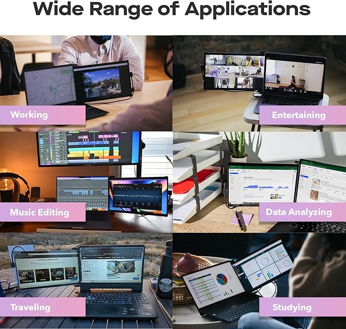 - Multiple Display Modes: The computer monitor supports horizontal orientation to vertical use; Dual laptop screens also offer multiple display modes: accessory mode, swivel monitor, portrait mode, landscape mode, and presentation mode