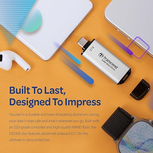- High-Speed Data Transfer: With a USB 10Gbps transfer rate and SLC Cache technology, the ESD300 delivers read and write speeds of up to 1,050 MB/s and 950 MB/s, respectively.