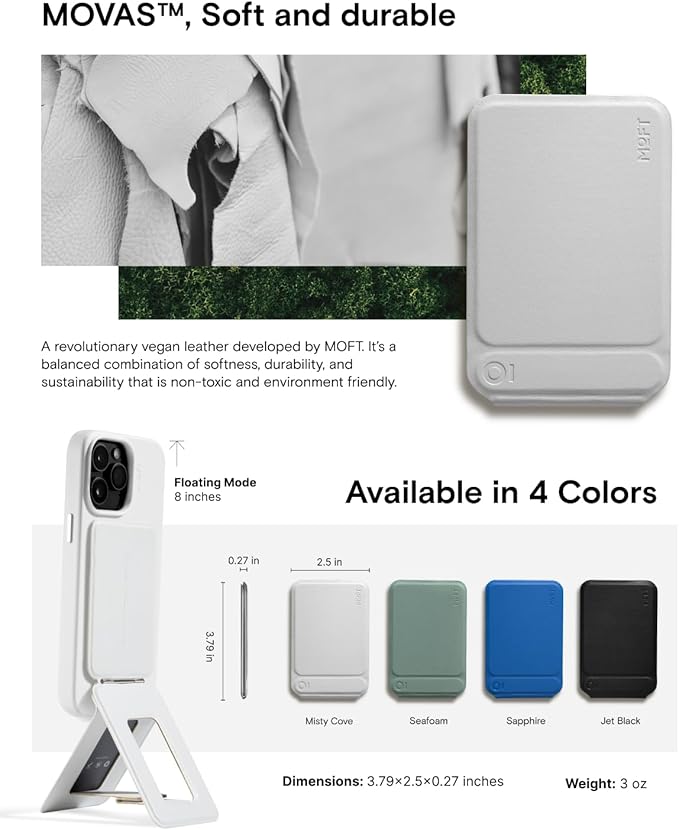 - Universal Compatibility: MOFT Phone Tripod fits iPhone 17/16/15/14/13/12 series and MagSafe cases. For other devices (such as Samsung) and non-magnetic cases, the phone stand can be attached using the included metal ring. Please check the product dimensions (3.8in X 2.5in X 0.27in) to ensure it fits the back of your phone without obstructing the camera. The slim design ensures your phone’s lenses stay unobstructed-perfect for Instagram-worthy shots at cafes, parks, or business events.