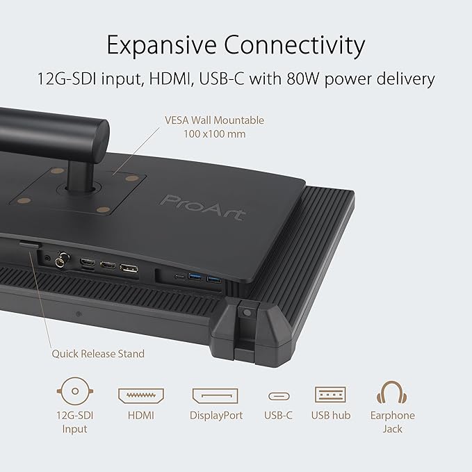 ASUS ProArt Display 24” 4K 12G-SDI HLG Professional Monitor (PA24US) - IPS, UHD (3840 x 2160), 99% Adobe RGB, 95% DCI-P3, ΔE < 1, USB-C, Built-in Motorized Colorimeter, Calman Ready, 3 Year Warranty