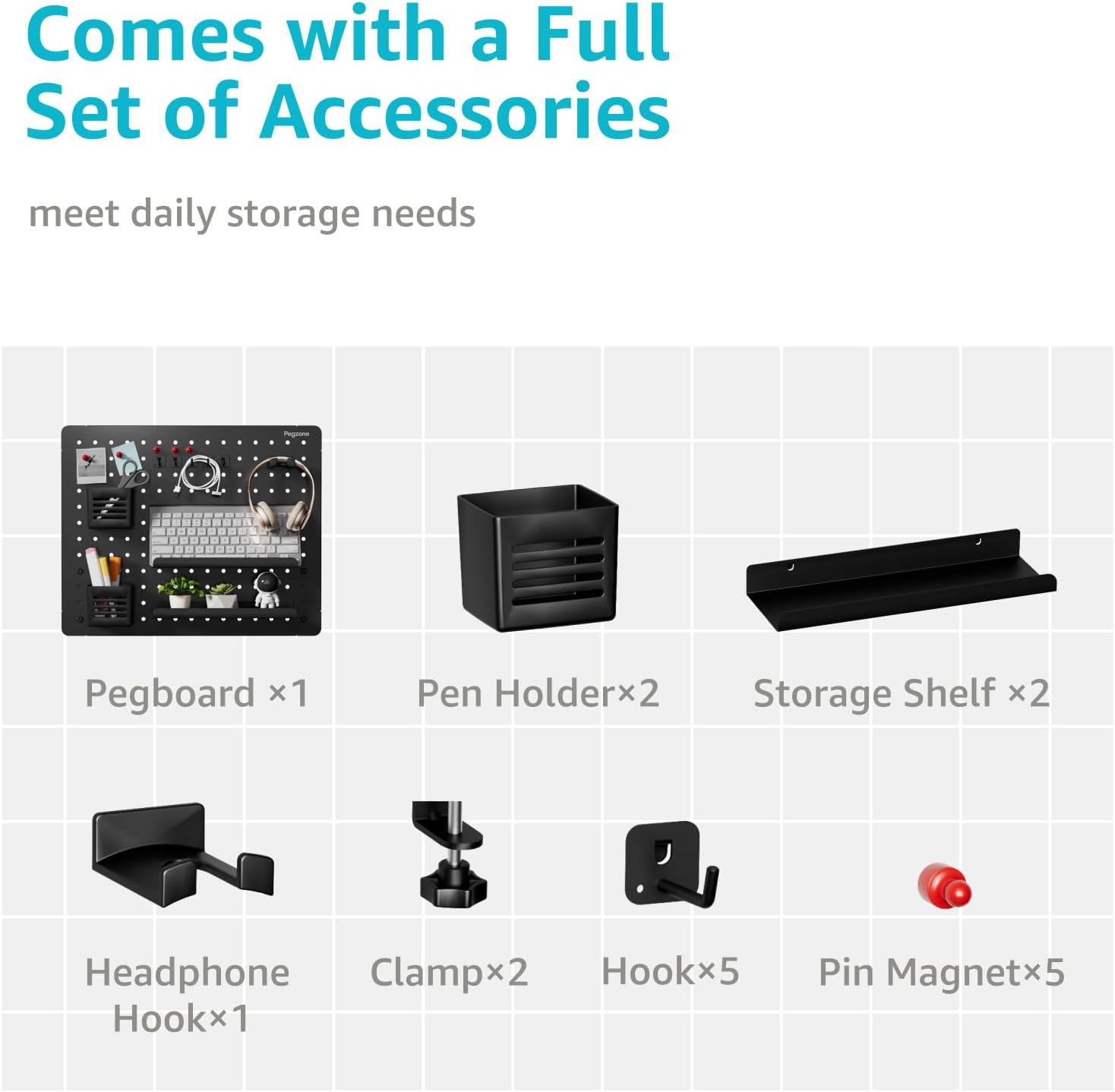 - ENDLESS STORAGE POSSIBILITIES: With its rich and multi-functional accessories, this desk organizer offers limitless storage options to keep your workspace tidy. Perfect for storing office supplies, displaying craft supplies, or organizing your favorite gaming accessories, this pegboard is a game changer for clutter-free living.