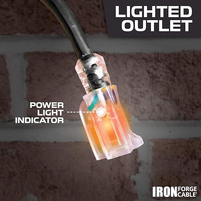 - UL Certified Extension Cord: 12 ga/12 awg, 3-wire grounded plug, lighted ends, SJTOW, heavy duty extension cord 10 ft, 15-amp, 125-volt, and 1875-watt capacity. 10' extension cord has Temperature Range: -40°F to +140°F