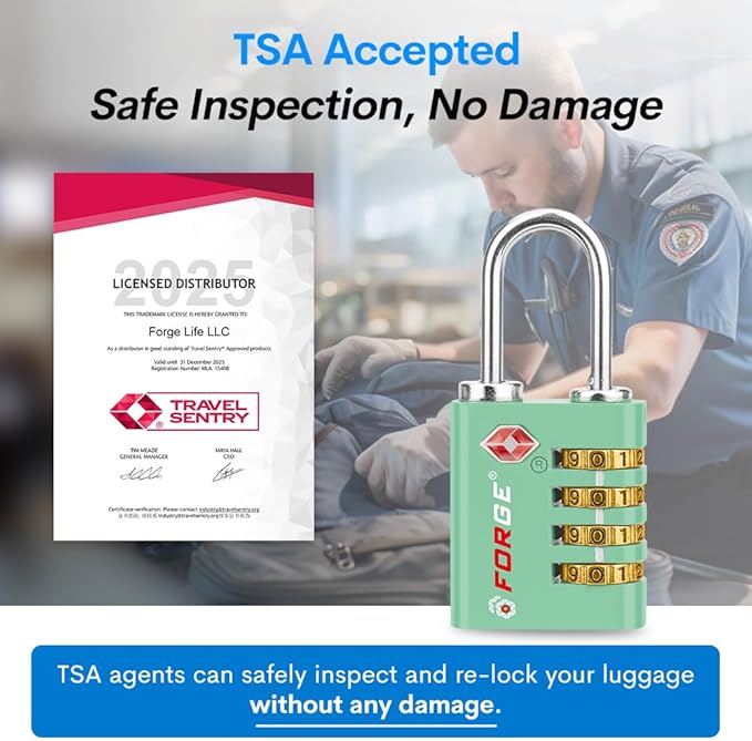 - TSA Approved Luggage Locks: Forge TSA approved locks are recognized by the TSA, with two TSA logos on the front and back of the lock, making them hassle-free for airport security inspections. Forge travel locks can be used on a wide variety of items besides suitcases or luggage. These locks can be used on a toolbox, pelican case, briefcase, gym locker, purse, backpack or laptop bag.