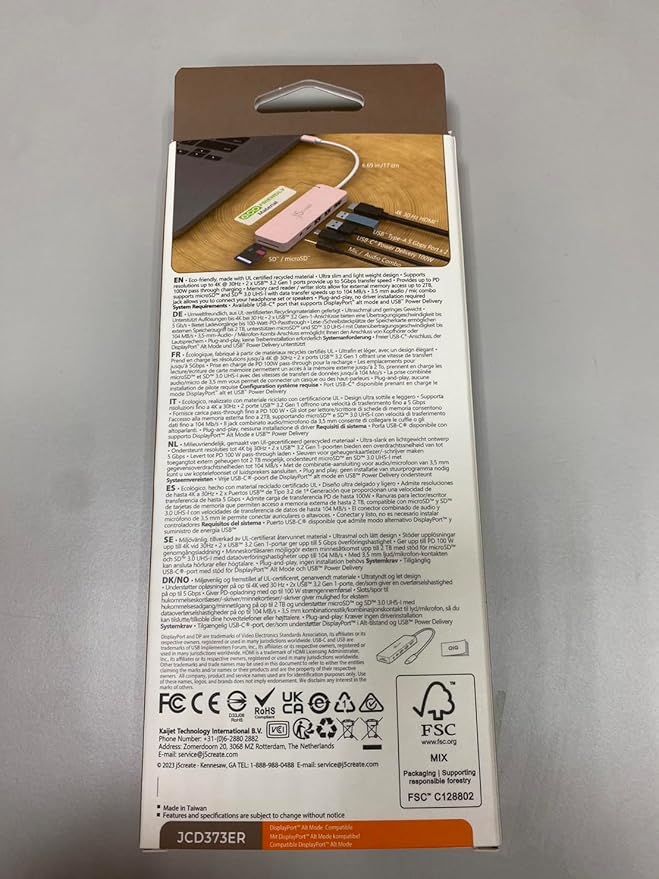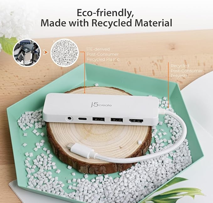 j5create USB-C Pink Multi-Port Hub with Power Delivery with 4K HDMI/2 USB-A 5Gbps/PD 100W Charging SD&Micro SD/3.5mm Audio | for MacBook/iPad Pro/iMac/Surface/XPS/Thinkpad/Galaxy/and More(JCD373ER)