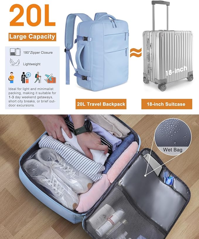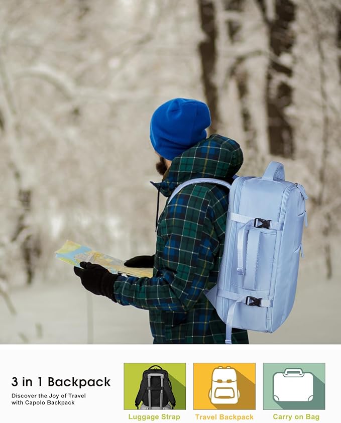 - 3 in 1 Backpack with 20L Capacity :Side handle helps you seamlessly transition from a backpack to a carry-on bag, providing flexibility for any travel scenario. The backpack mode ensures comfort and frees your hands during explorations, while the luggage strap allows you to effortlessly secure it to your suitcase, adding an extra layer of convenience. Elevate your travel experience with a bag that adapts to your needs, offering style, functionality, and the perfect travel solution all in one