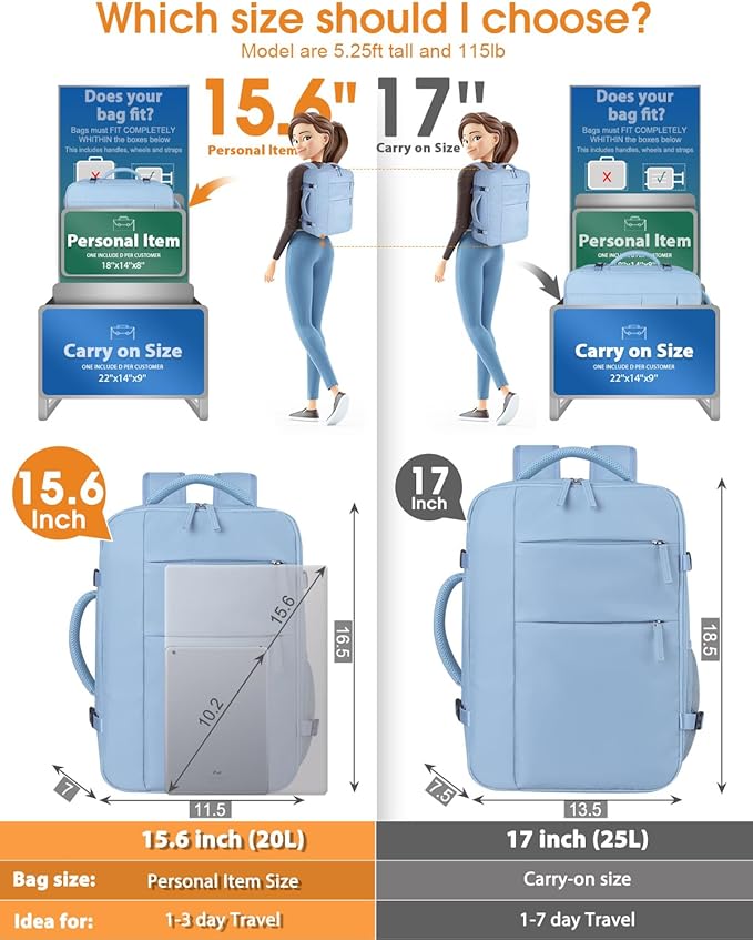 - Comfortable Personal Item Backpack:featuring a breathable mesh back panel and padded shoulder straps designed to effectively alleviate pressure on your shoulders and neck. 11.5*7*16.5 inch comply with the majority of airline regulations for personal item bags, ensuring hassle-free travel