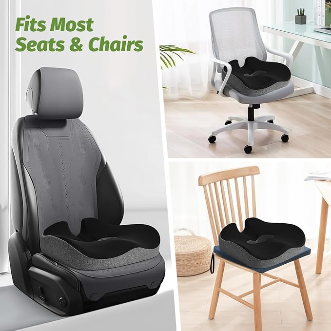 - PORTABLE CUSHION: anzhixiu donut cushion for tailbone pain is easily taken along. You can put it on office chair, car seat, or use it on train, airplane so on. It turns out to be the best butt donut pillow tailbone pain relief, giving the required support to maintain the scientific posture, reducing sitting pain to be more mindful on work.