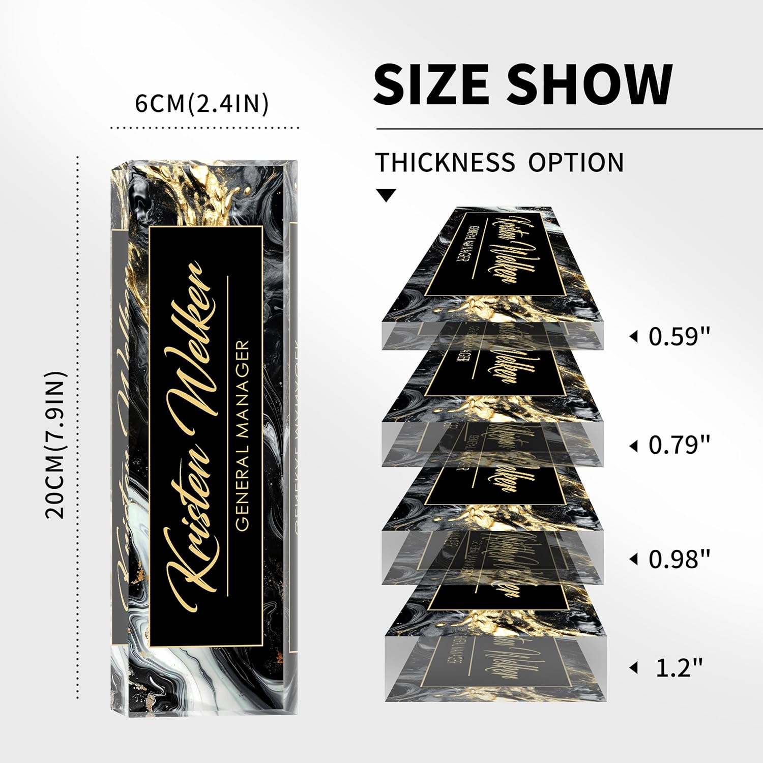 - High Quality Products: This high quality custom desk name plate is made of eco-friendly acrylic material, using the most professional cutting technology, the most advanced HD printing technology and the latest adhesives, which makes the product look beautiful, strong and durable, and the problem of peeling off of the pattern never exists, so please rest assured to buy our name plate for office desk.