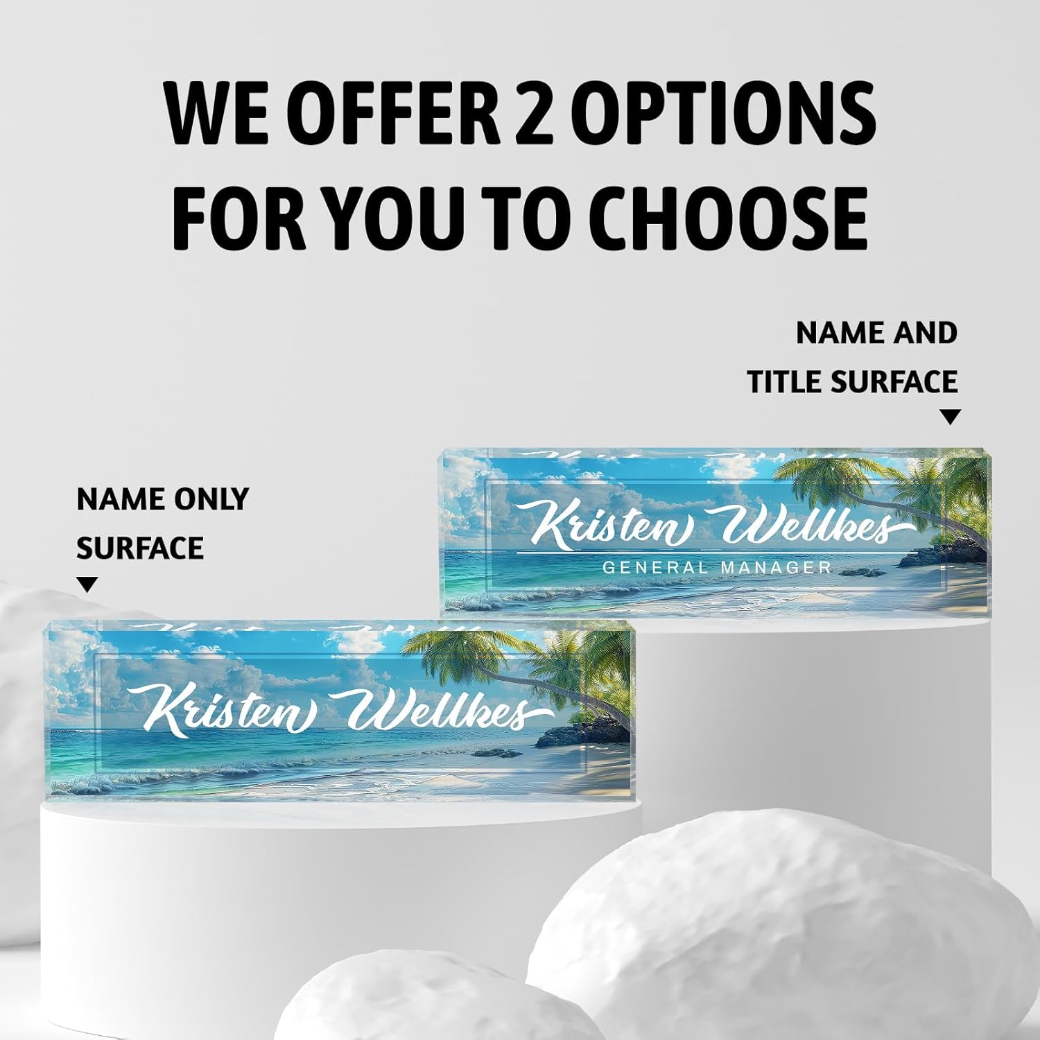 - Custom Name plate: Choose your favorite name plate for desk design style, click the "Customize Now" button, fill in your name and title correctly, please don't worry about the bad effect of the final product, we will have a professional design team to be the final gatekeeper for you, so please start your customization journey and design your own charming works.