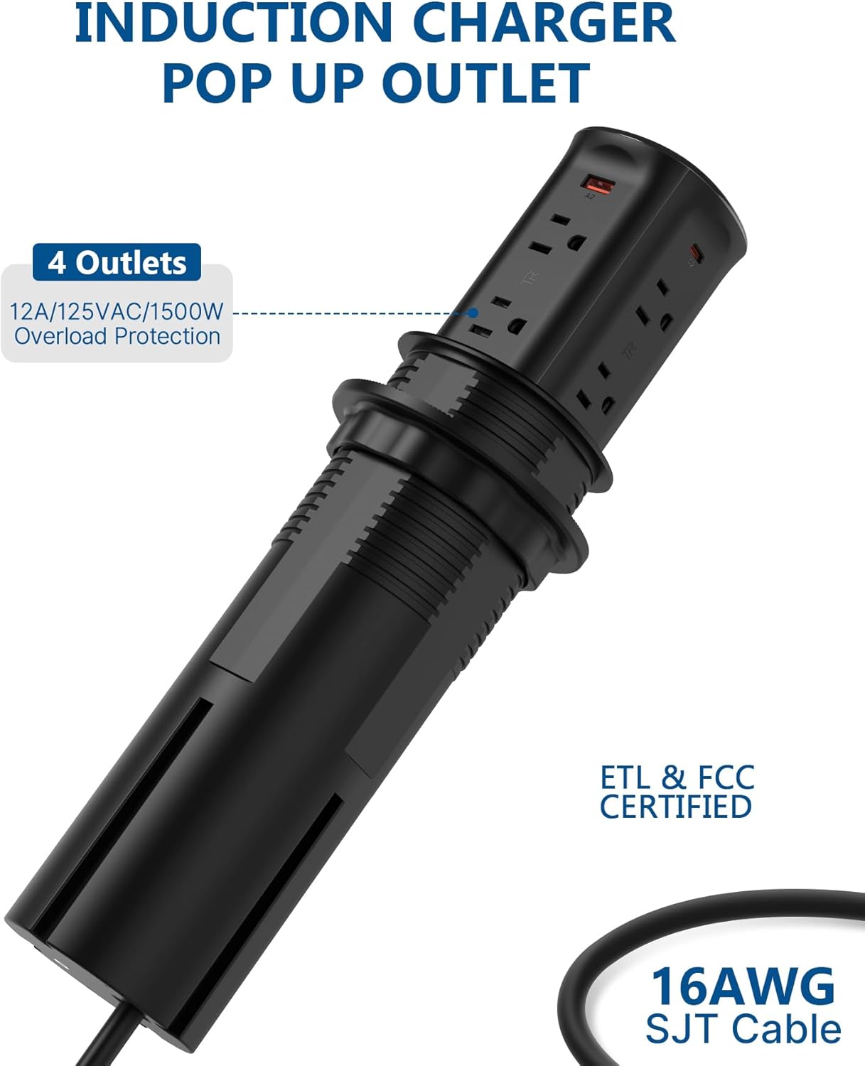- Sleek & Space-Saving Power Hub: Retractable hidden design, No more messy cords β just tap to rise, press to hide. Perfect for modern homes craving minimalist style.