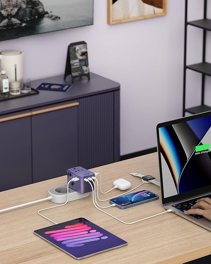 - Safety and Quality Assurance: Advanced GaN technology makes worldwide international adapter charging faster, cooler and more efficient. Lower charging temperature for longer service life. 10A overload fuse makes it possible to cut off the current in case of overcurrent charging.Fire resistant material makes this adapter non flammable. With safety shutters and plug lock system, supporting short circuit, over voltage and over current protection
