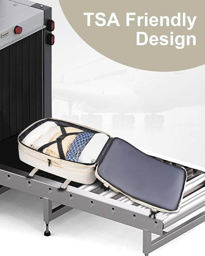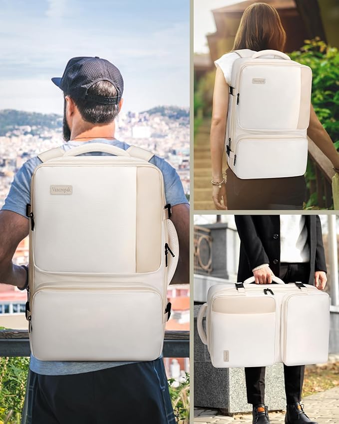 Vancropak Expandable Carry on Backpack for Airplanes, TSA Personal Item Airline Approved 40L Travel Backpack for Women, Lightweight Weekender Overnight Luggage Daypack Suitcase, Travelers Gifts, Beige