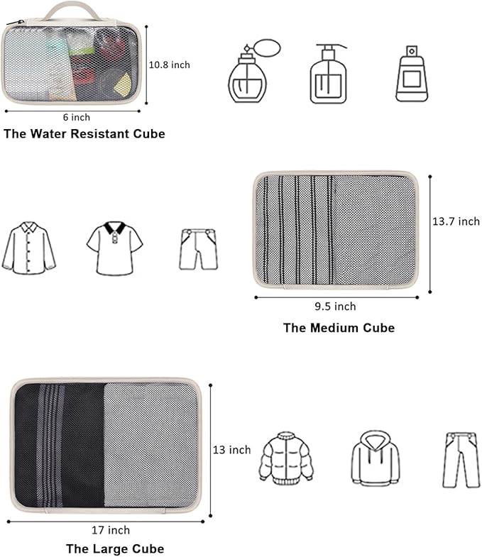- 3 Extra Packing Cubes: Organizer like a pro – the travel backpack carry on flight approved has 3 Packing Cubes of different sizes for you to sort different types of clothing, Large cube for jackets, sweaters, trousers, Medium cube for shirts, shorts, blouses, Small water resistant cube are available for you to put the toiletries you need for travel, make your various travel necessities Neat and Orderly, bring you more convenience during the journey