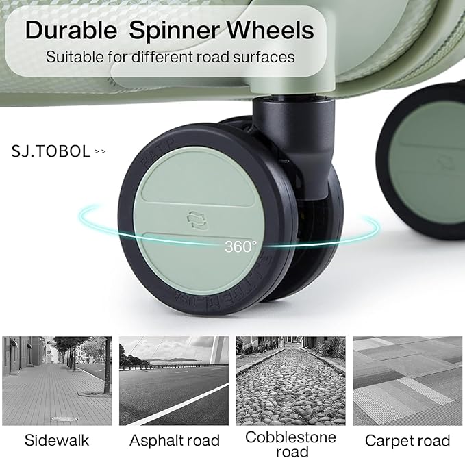 - 【High Quality Accessories】SJ . TOBOL durable spinner wheels,It is composed of precision shaft center and thickened TPE wheel skin, which is very wear-resistant,quieter and has strong bearing capacity, It is applicable to different roads such as cobblestone road and carpet road. Smooth and durable 5-strand reinforced explosion-proof zipper reverse coil prevents burst zipper. Travel-approved combination lock is safe and convenient. Ergonomics telescopic handle with multi-steps adjustment.
