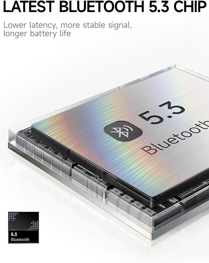 - 🎶【BT 5.3 & HANDS-FREE CALLS】Equipped with the latest Bluetooth 5.3 chip, Picun B8 bluetooth headphones has a faster and more stable transmission range, up to 33 feet. Featuring unique touch control and built-in microphone, our wireless headphones are easy to operate and supporting hands-free calls. (Short touch once to answer, short touch three times to wake up/turn off the voice assistant, touch three seconds to reject the call.)