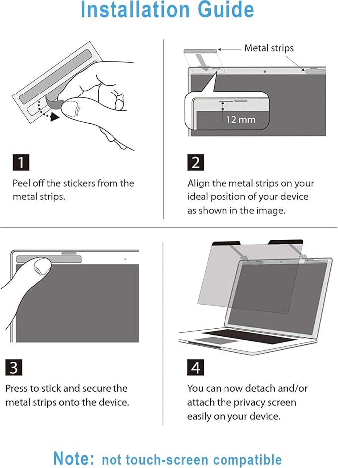 - 2.【Magnetic Removable Installation】:14 inch laptop privacy screen 16:10 filters are designed with a magnetic attachment. Simply attach the magnet to the top of your laptop and let the privacy screen protector attach to your computer screen.The 14 inch laptop screen protector avoids the damage that can be caused by using adhesives, and the screen can be easily removed and reinstalled whenever needed.